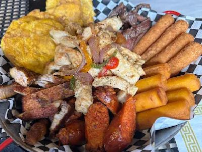 Top Sirloin, Pork Chop, Chicken Sauteed, Fried Plantains, Sausage, Corn Sticks, Potato Bowl